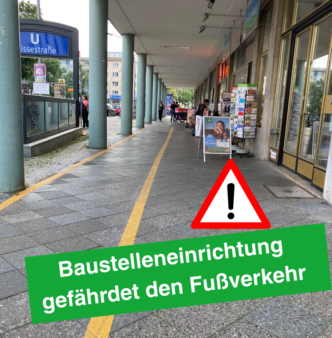 🛑 Gefährdung des Fußverkehrs am U-Bahnhof Blissestraße – unsere Beschwerde an die Senatsverwaltung