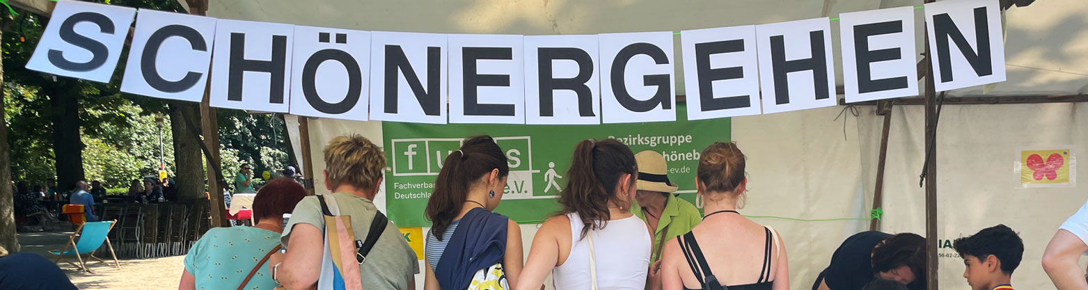 Die Bezirksgruppe FUSS e.V. Tempelhof-Schöneberg vertritt die Interessen von Fußgängerinnen und Fußgängern im Bezirk und ist Ansprechpartnerin für Öffentlichkeit, Politik und Verwaltung bei konkreten Problemen vor Ort, Projekten und Planungen. Wir benennen Missstände und schlagen Verbesserungen für den Fußverkehr vor. Seit September 2022 sind wir im bezirklichen Fußverkehrgremium “FußRat” vertreten.